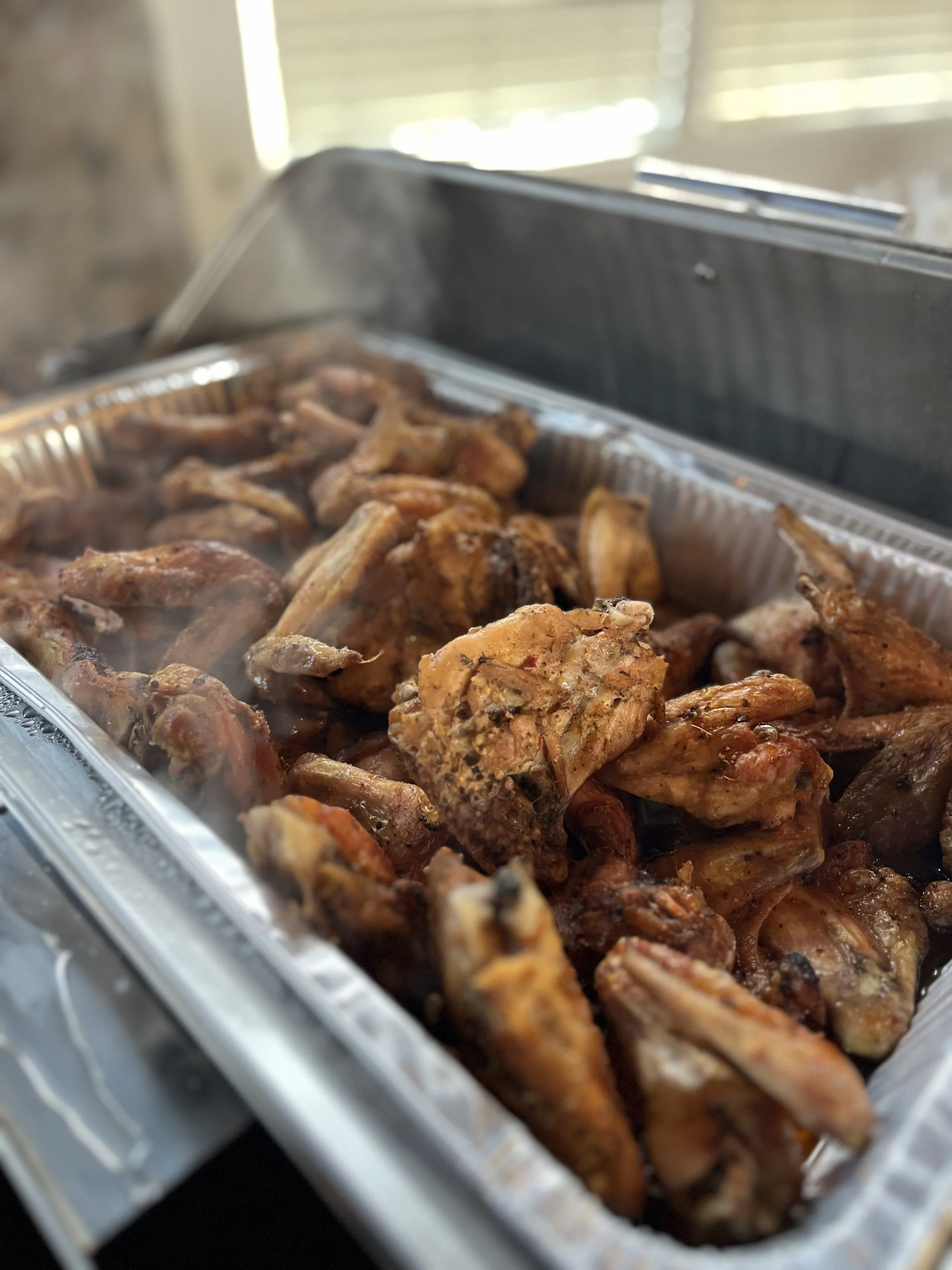 Client chooses: Baked Chicken (no surcharge), Fried Chicken (no surcharge) & Sliced Roast Beef w/ Gravy (+$1.00 surcharge)